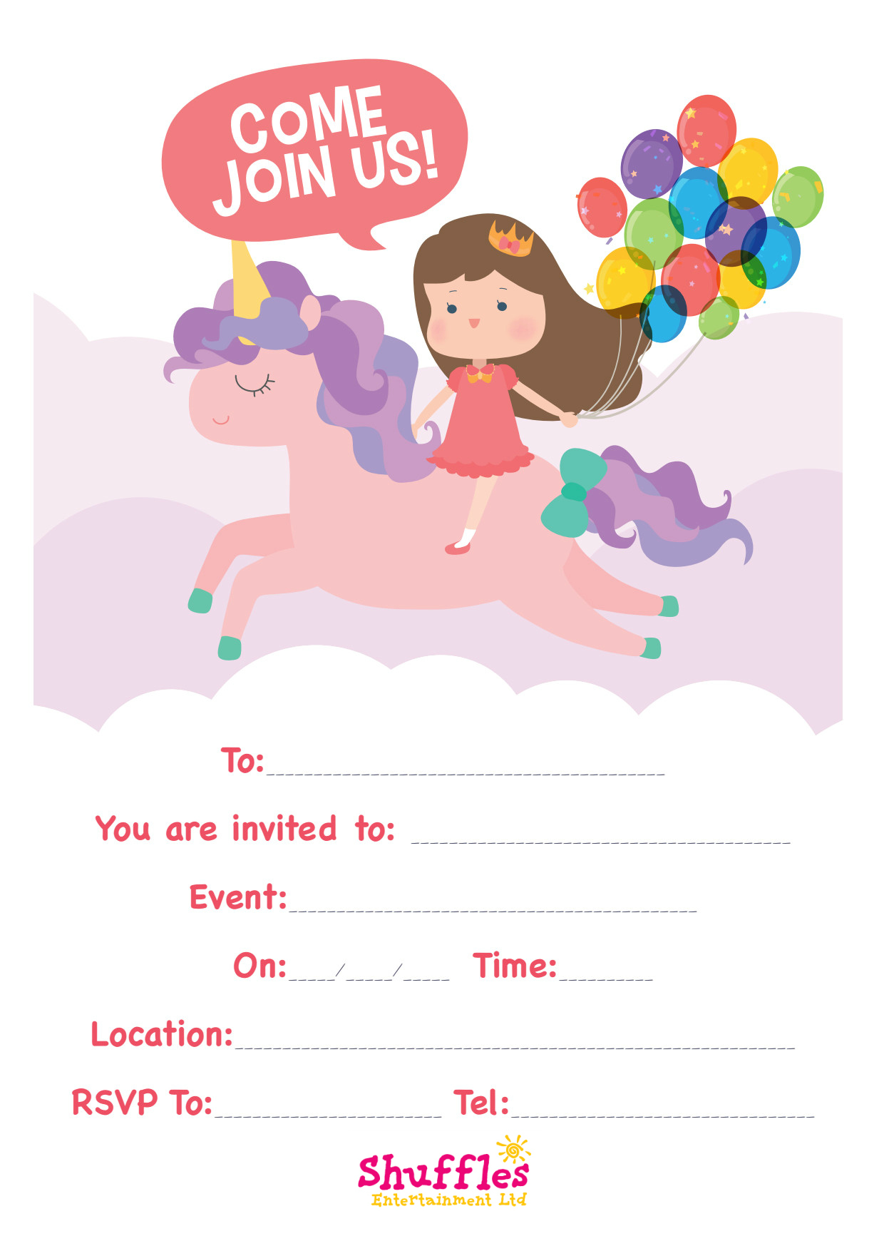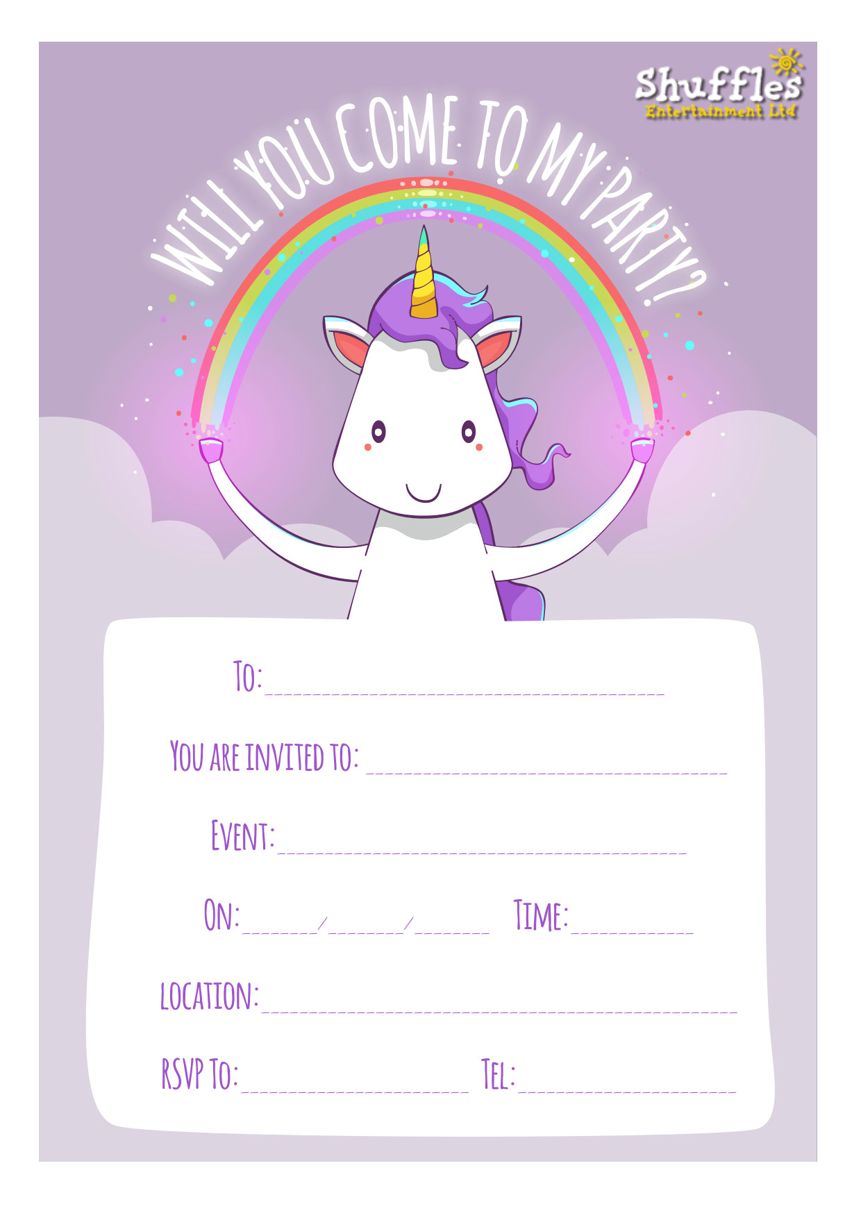 NEW: Unicorn themed party invitations free to download