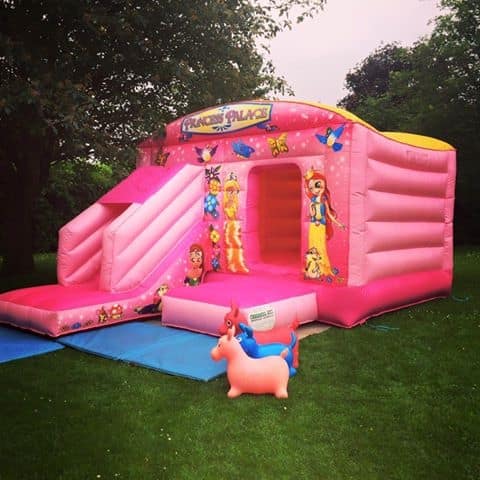 Complete the picture with this spectacular pink princess palace bouncy castle & slide combi unit. Stunning artwork and colours, UK manufactured to the highest quality. You won’t be disappointed.