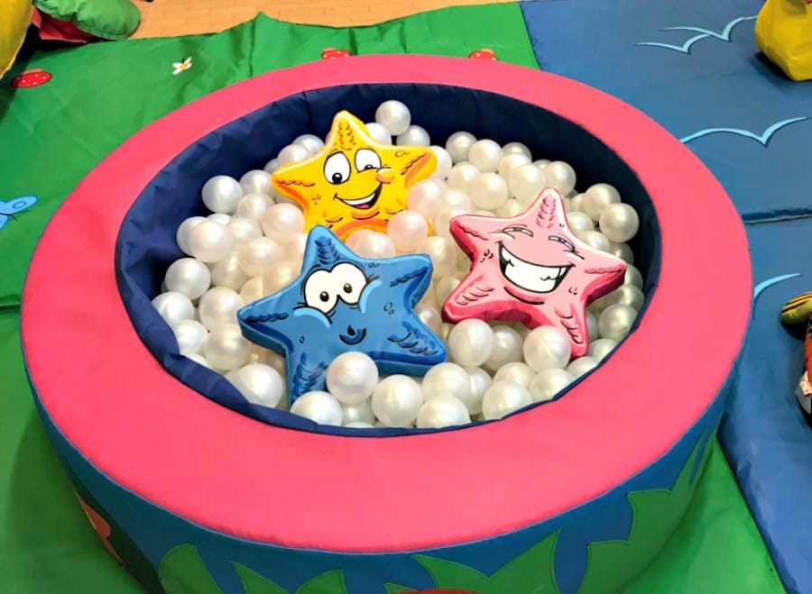 This is a soft play ball pool with 3 cute star fish shapes suitable for under 3yrs, a perfect size for small venues and for indoor spots, no fan required.